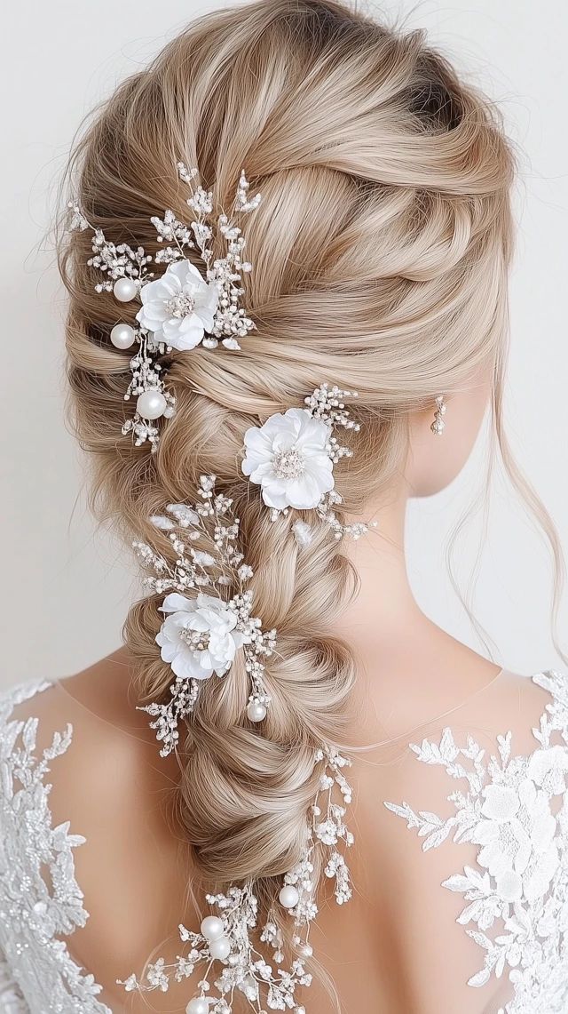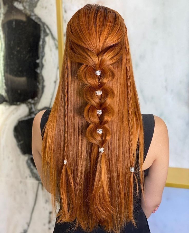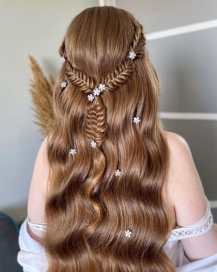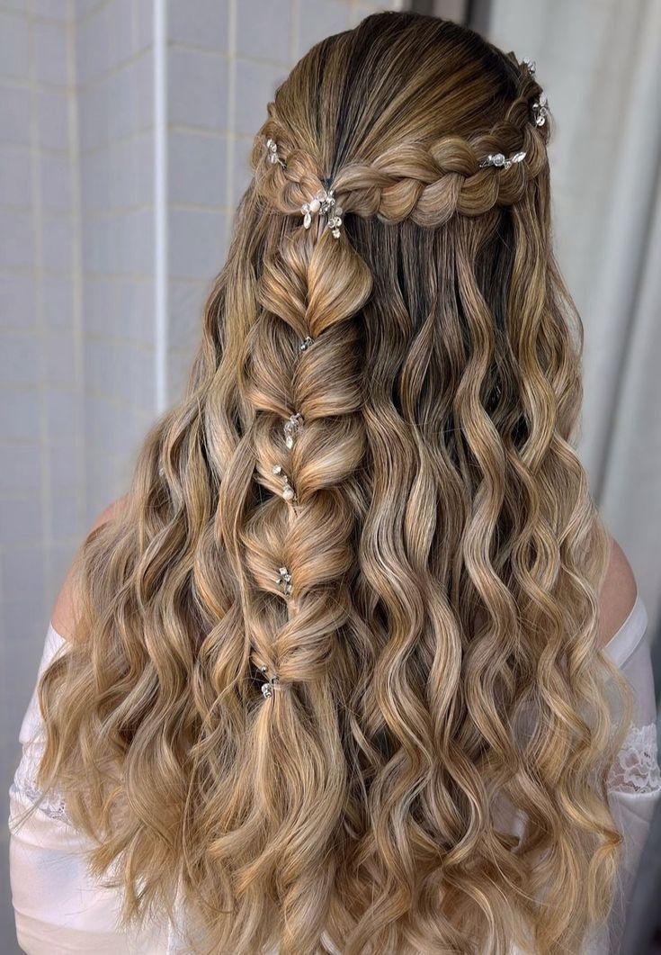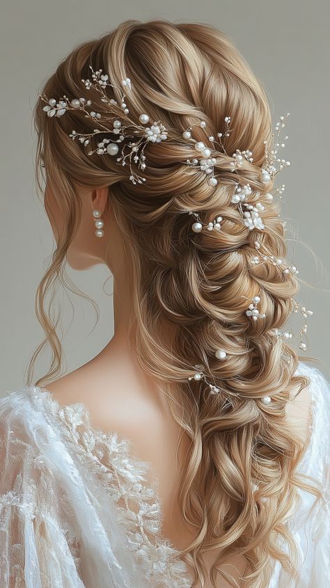 نصف موها از بالا جمع شده و بقیه باز باقی میمانند. با گیرههای مرواریدی یا نگیندار تزئین میشود.