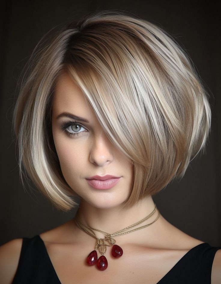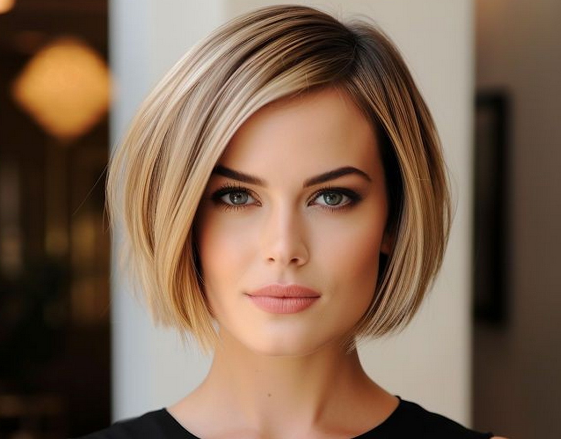 10. مدل موی کوتاه با فرق کج و ژل براق