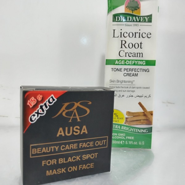 پک روشن کننده و ضد لک AUSA و دکتر دیوی، این پک شامل صابون روشن کننده و ضد لک و ضد جوش پوست صورت AUSA و یک عدد کرم روشن کننده و ضد لک دکتر دیوی با عصاره ریشه شیرین بیان است. ترکیب این دو محصول، فرمولی علمی و هوشمندانه برای درمان لک‌های پوستی، جوش‌های مقاوم و تیرگی‌های مزمن محسوب می‌شود.