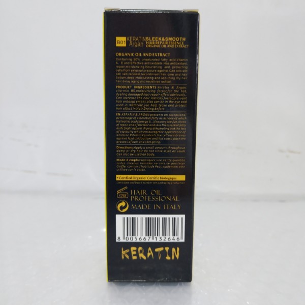 روغن آرگان و کراتین BODY & THAIRAPY محصولی ساخت ایتالیا است که هدف آن مرطوب‌سازی، بازسازی ساختار مو و افزایش نرمی و درخشندگی است.
