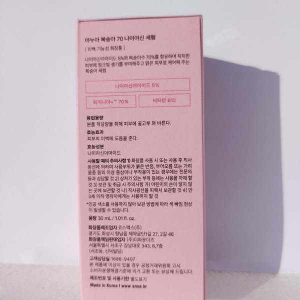 سرم نیاسینامید آنوا با تمرکز بر ترکیب نیاسینامید در فرمول و افزودن عصارهٔ هلو با ادعای «+70» نشان می‌دهد که برند تلاش کرده است اثربخشی روشن‌کنندگی و لطافت بافت پوست را همزمان تقویت کند.